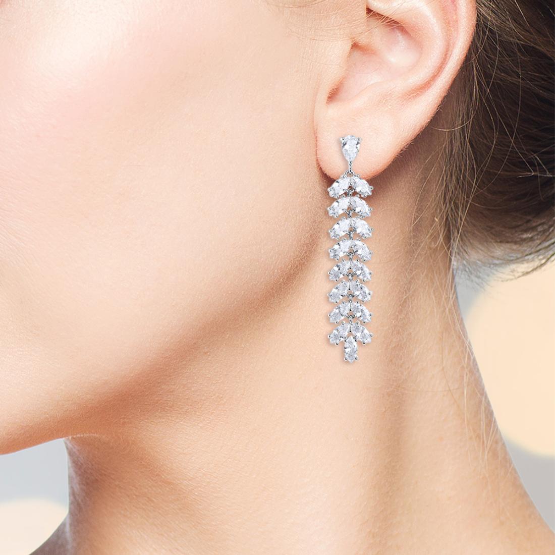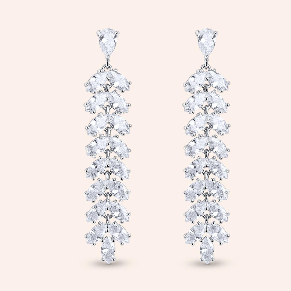 With a delicate cascade of pear and marquise cut stones, these earrings capture the essence of nature's beauty in a captivating design. Elevate your style with the timeless elegance that dances with every step you take.