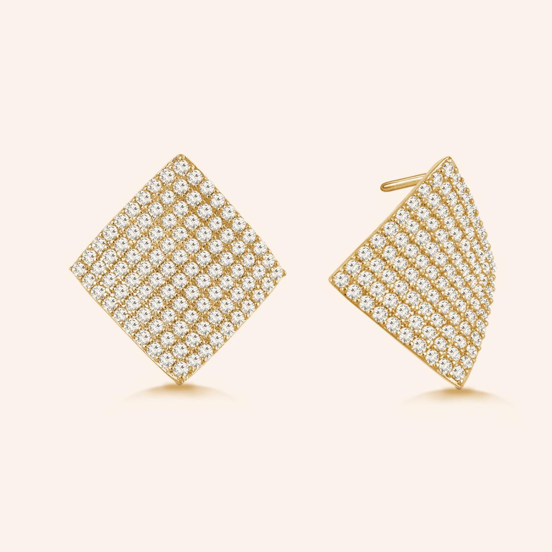 Make your look pop! These bold Prong-set CZ's diamond shape earrings are as beautiful as you can get. Their sophisticated design amps up your shine factor, while their trendy shape put a refreshing spin on the traditional pair of earrings. Glitz and Glam is always a must have.