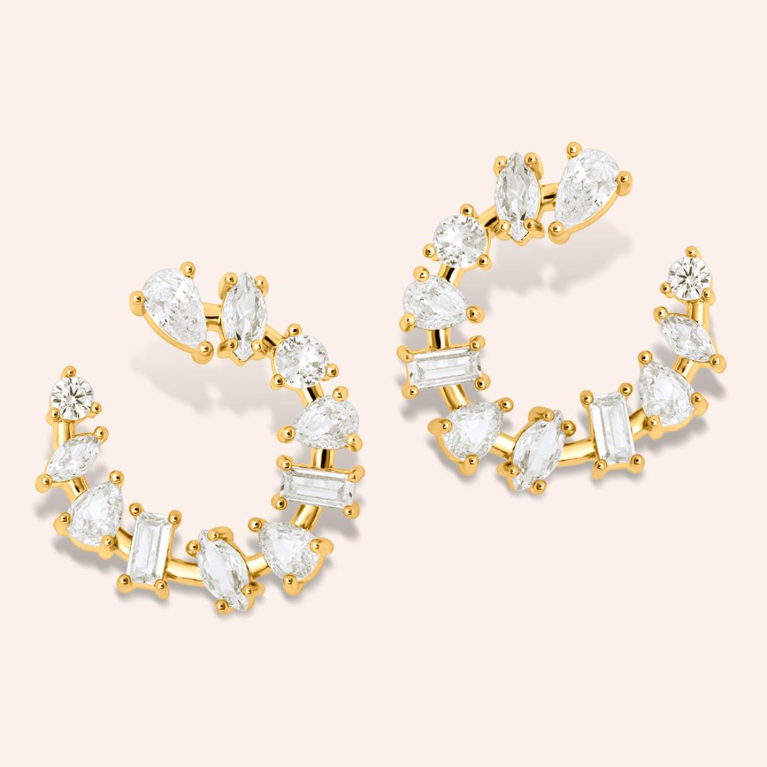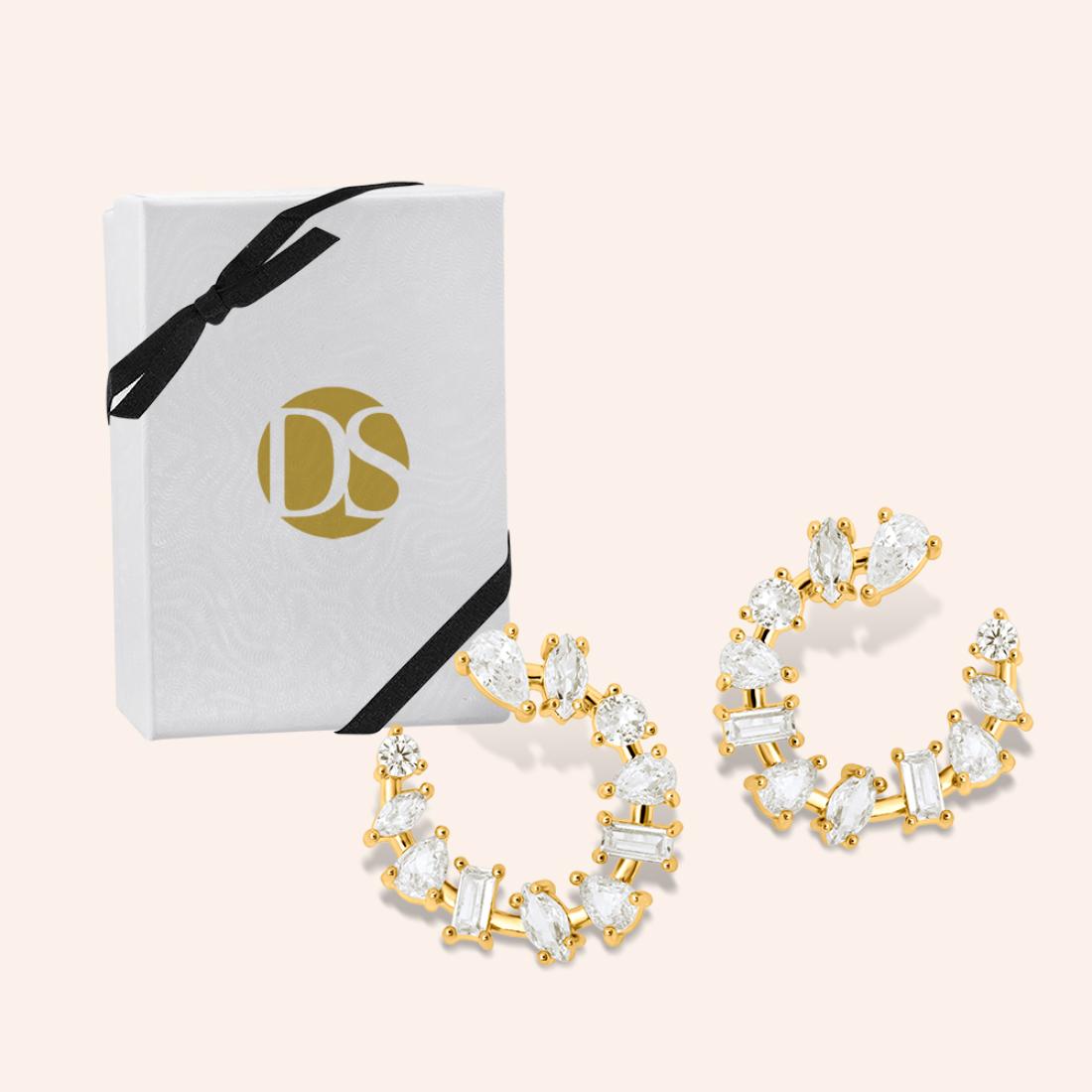 Ultra chic and delightfully unexpected! Sparkle radiantly from every angle, whether you're hitting the gym, running errands, or enjoying a dinner out. The cleverly designed front-back prong-set mixed cuts ensure you shine brilliantly from every perspective.