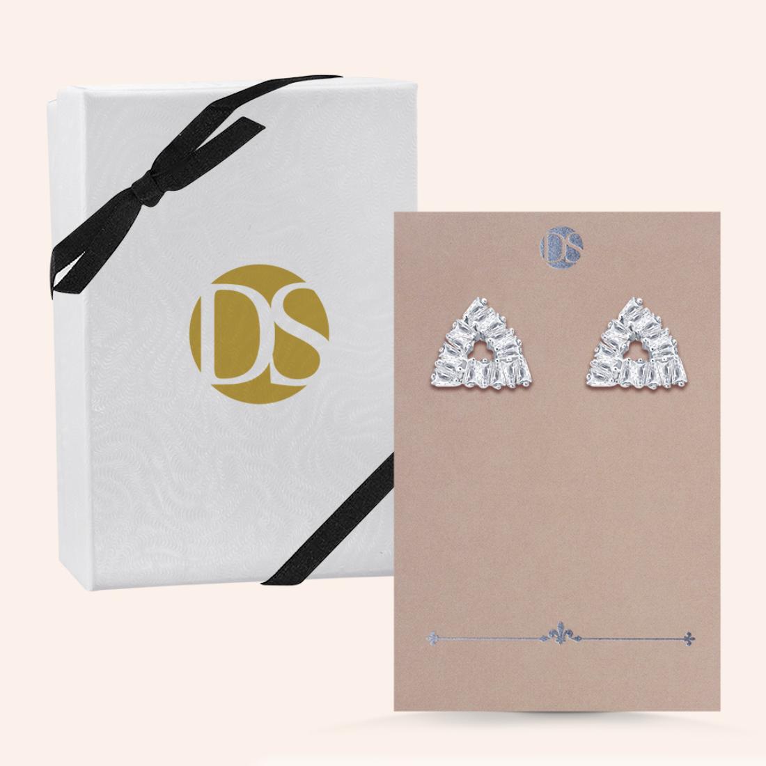 Get everything you adore about go-to glamour. A striking pair designed with multiple Baguettes forming an elegant and sparkling triangle. These beautifully crafted studs are a must-have for jewelry that wraps up any ensemble. As if studs couldn't be more perfect!