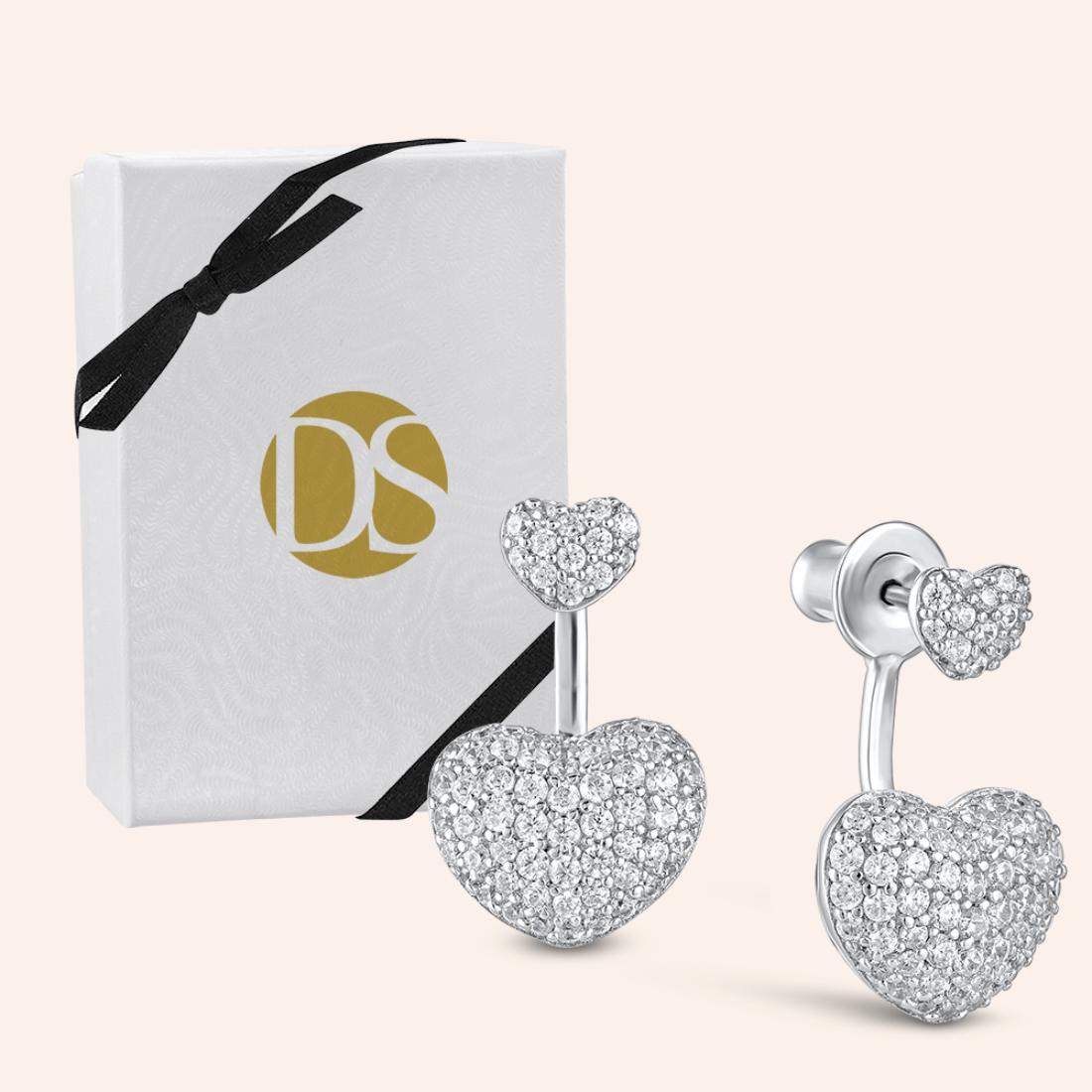 Valentina Pave Hearts Front Back Earrings