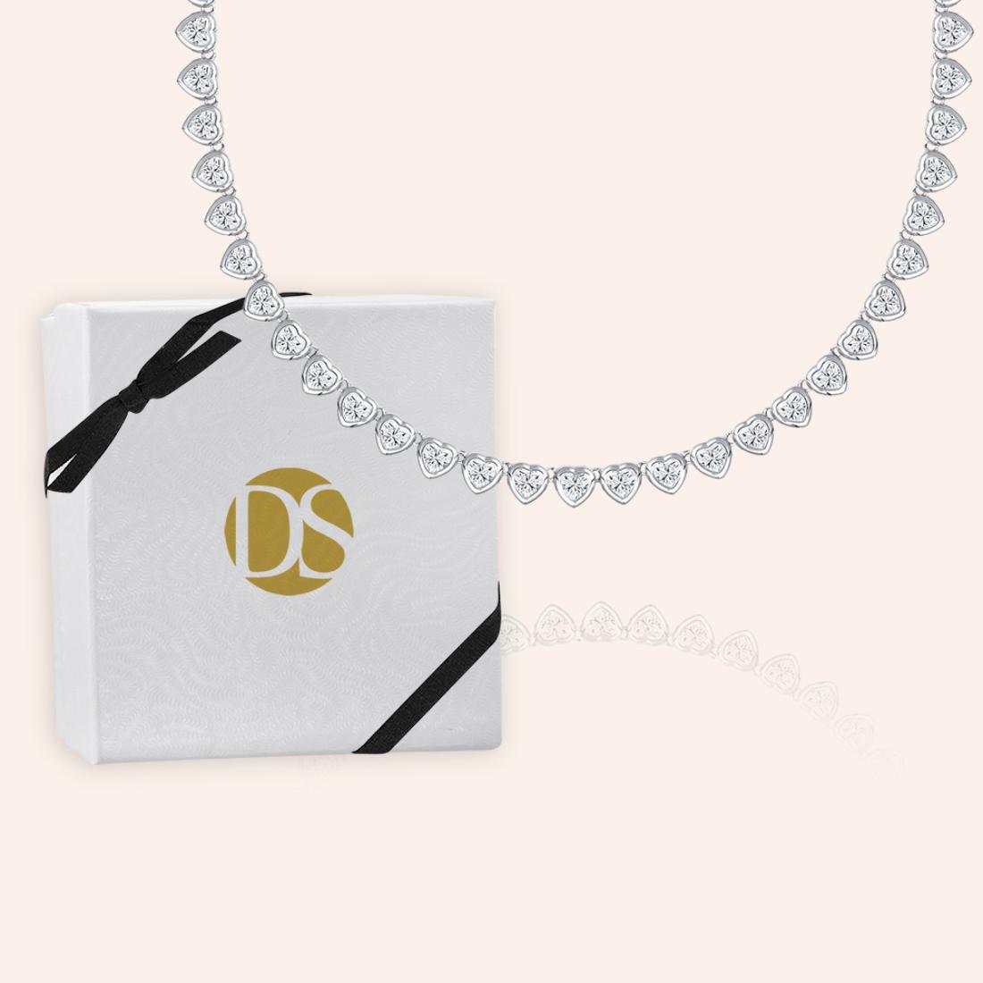 Nothing says love quite like an array of delicately arranged heart shaped diamonds in a breathtaking bezel setting. This exquisite eternity necklace is outrageous alone or added to your Stack.
