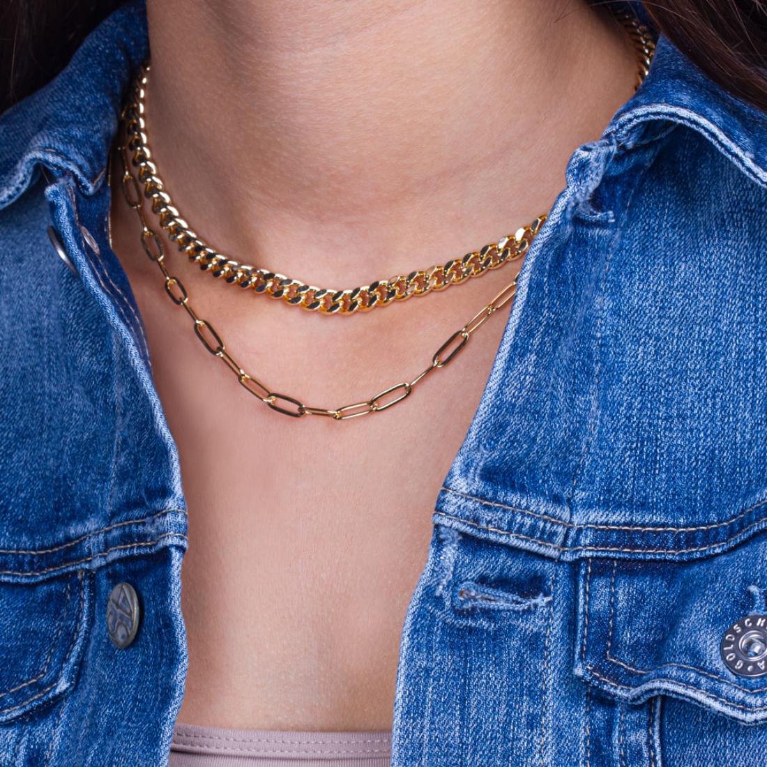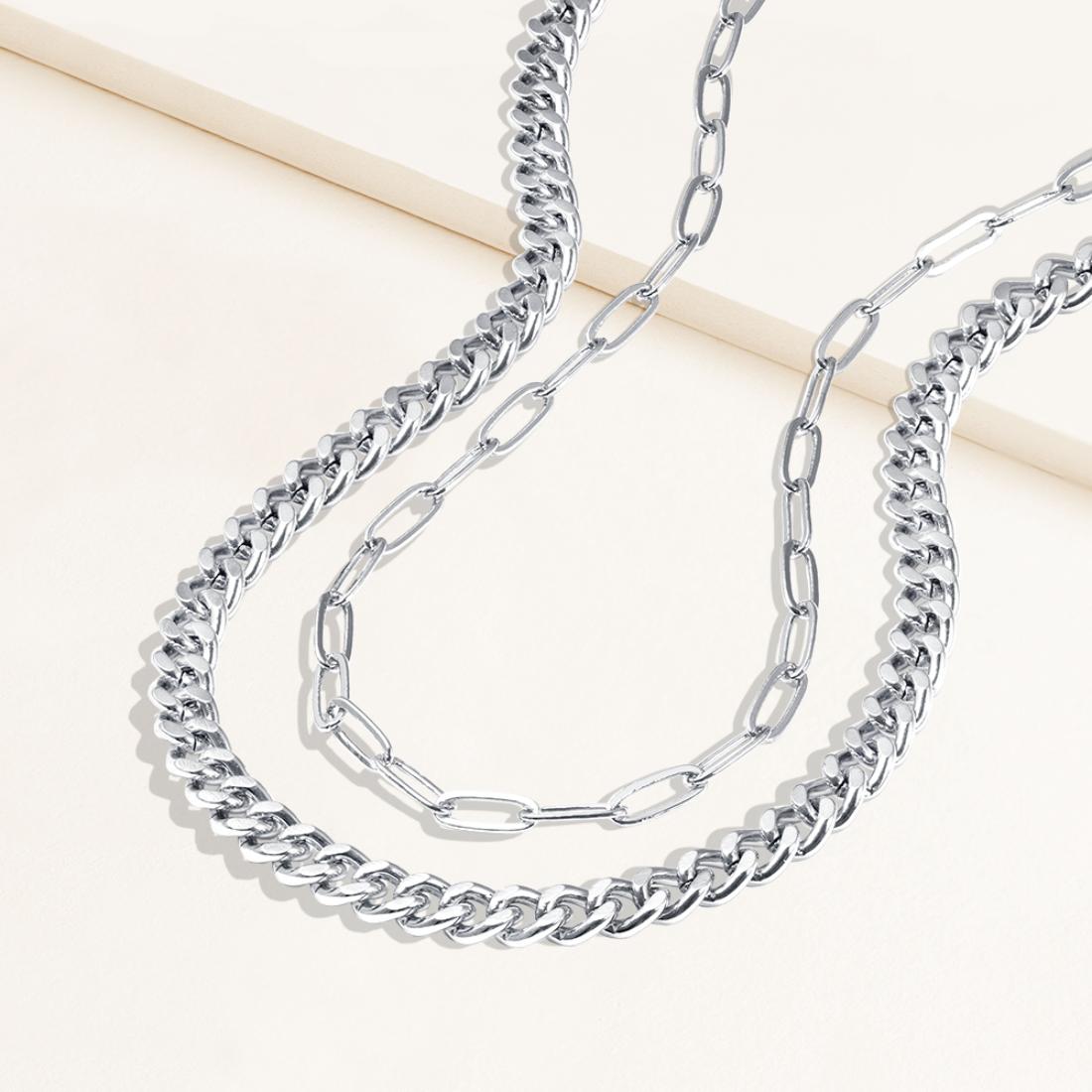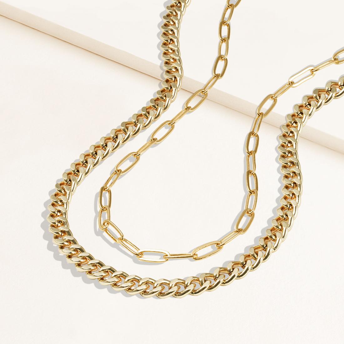 Celina Duo Curb & Thin Clip Chain Layering Necklaces - Set of 2