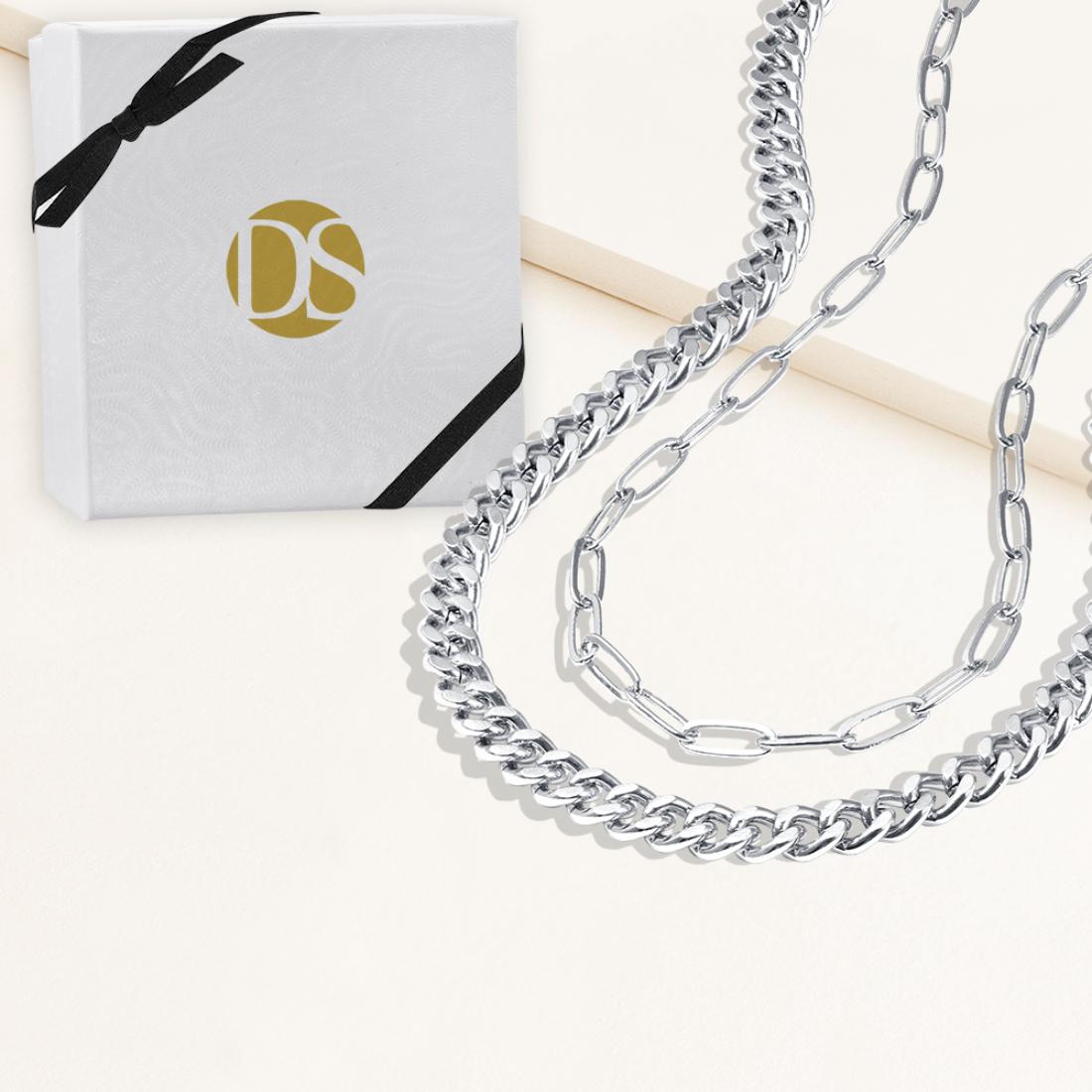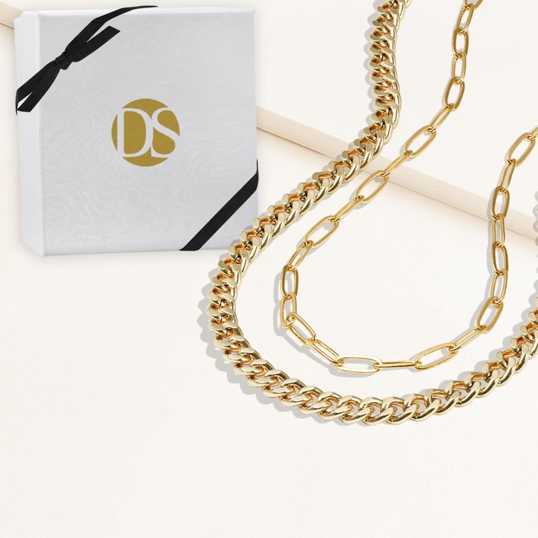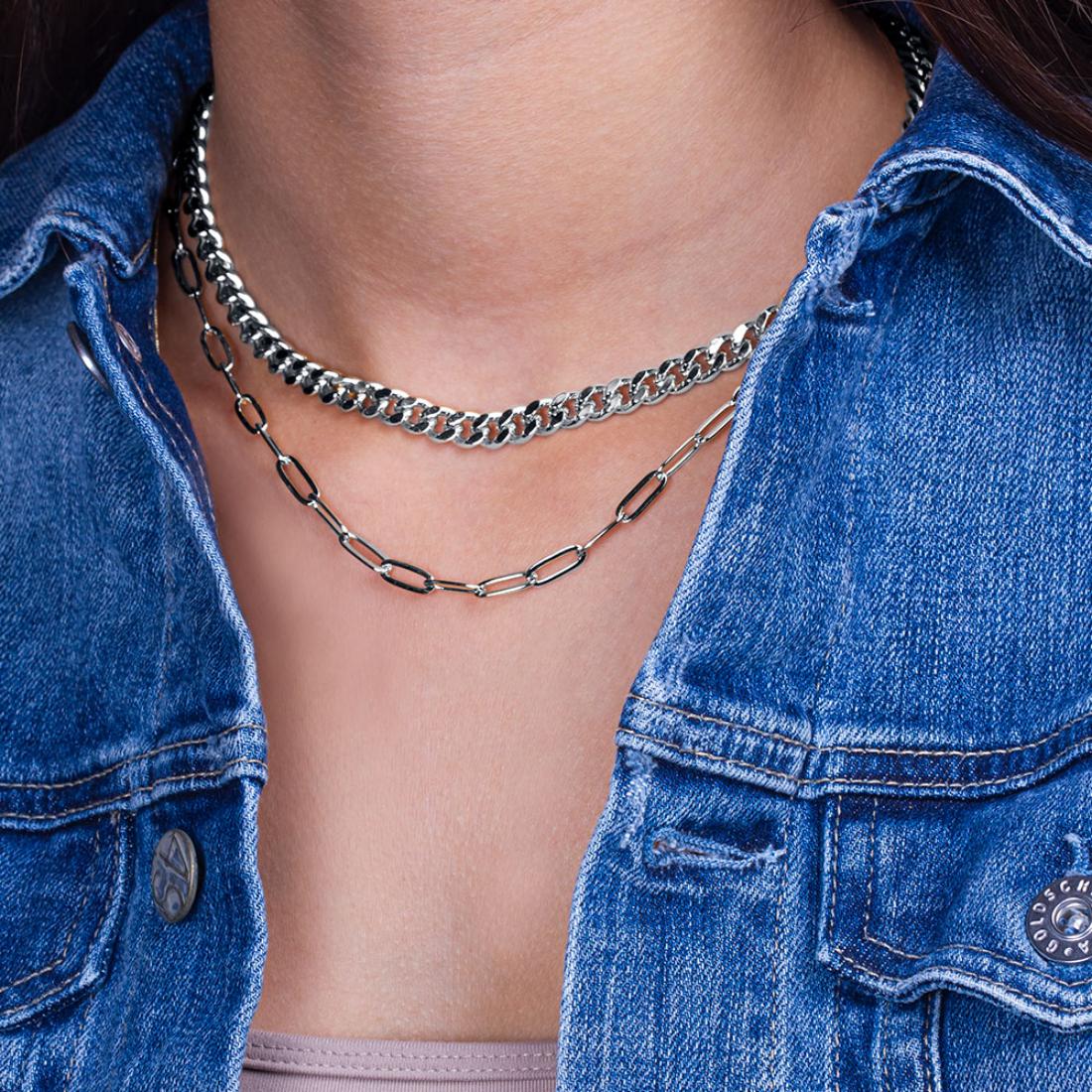 Celina Duo Curb & Thin Clip Chain Layering Necklaces - Set of 2