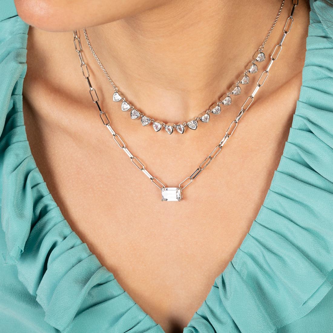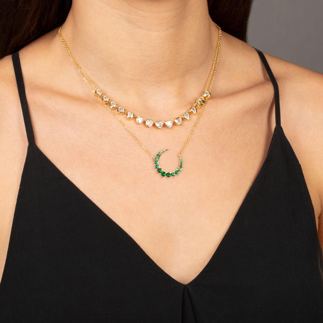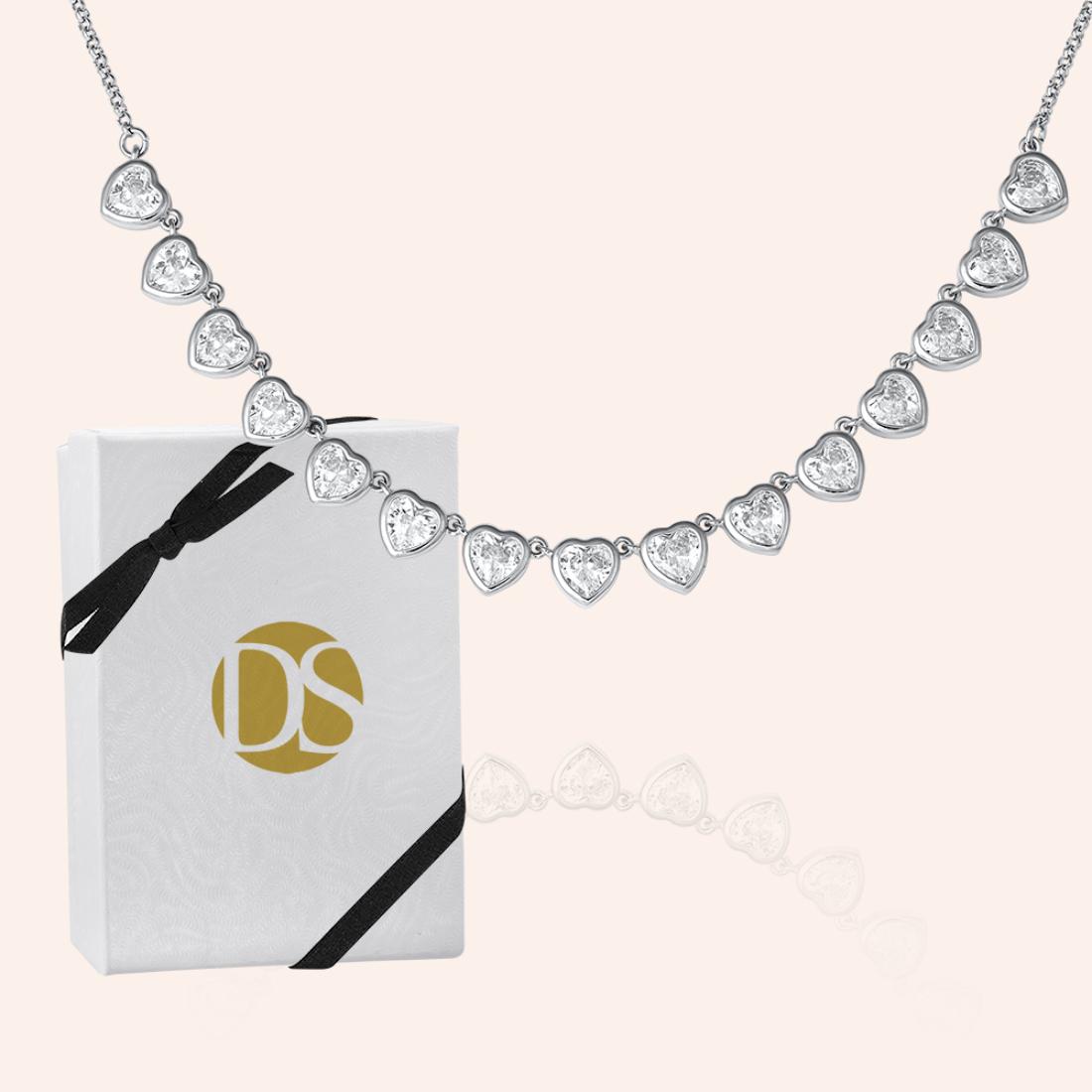 Bright lights, midnight! You were destined for style eminence. The perfect accent to the perfect moment, this bezel set heart cut stones necklace makes everything beautiful.