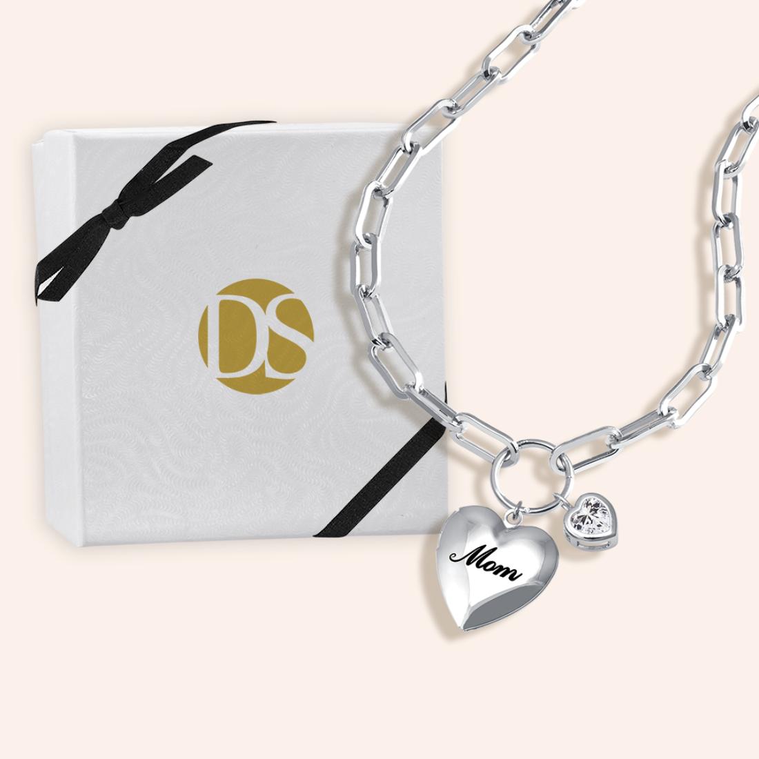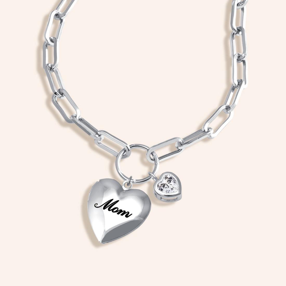 Celebrate your mom with this darling set... The bold paperclip chain Necklace comes with a circle charm holder and two gorgeous charms proving to be an ideal outfit accent. Let your creativity shine by adding charms, mix and match, and keep collecting to create a whole new look.
