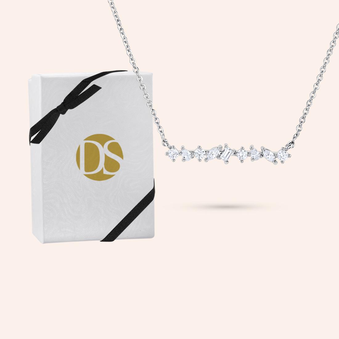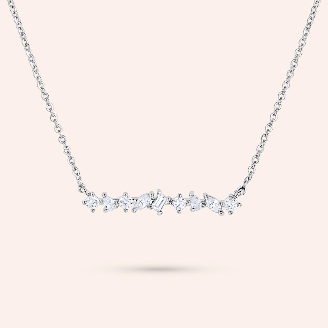 Meticulously designed on a delicate chain, this necklace features a bar pendant adorned with a blend of cubic zirconia stones, creating a captivating play of light. A versatile piece that effortlessly transitions from day to evening, offering timeless chic and a touch of dazzling sophistication to your ensemble.