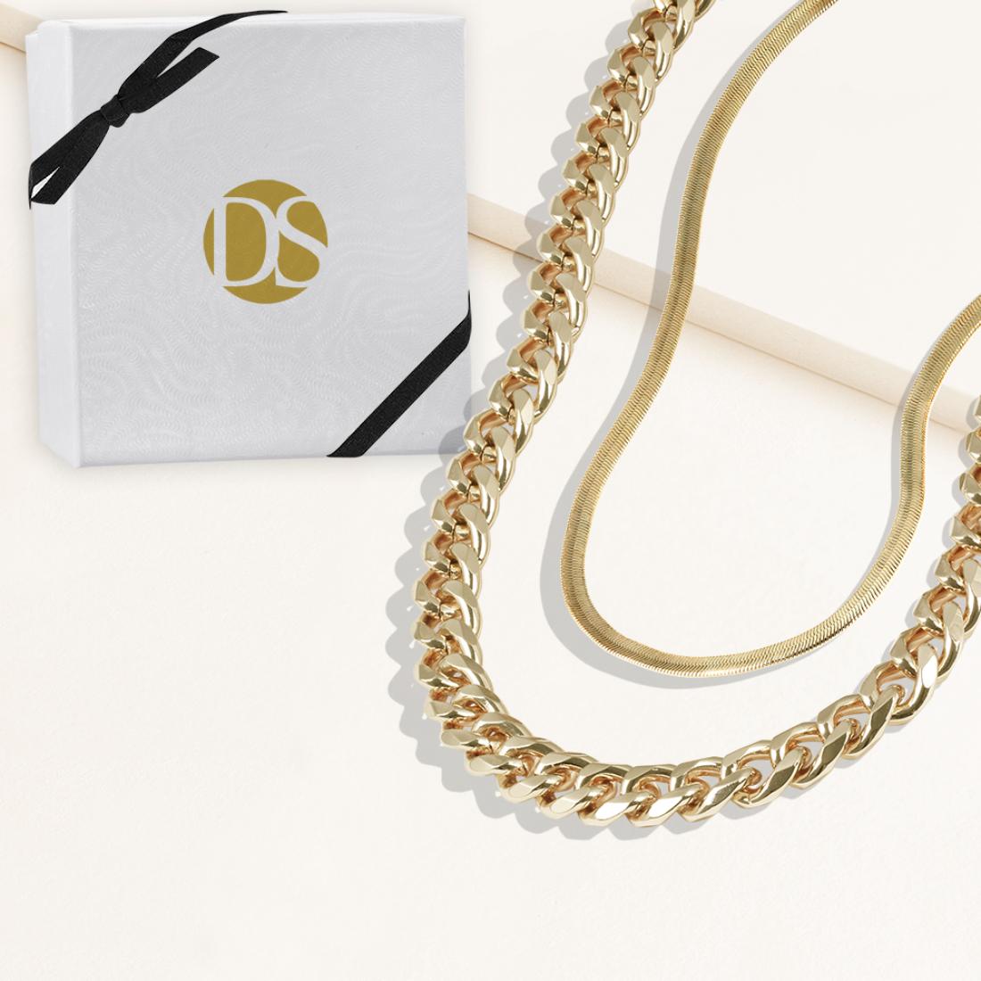 Lola Duo Herringbone & Large Curb Chain Necklaces - Set of 2