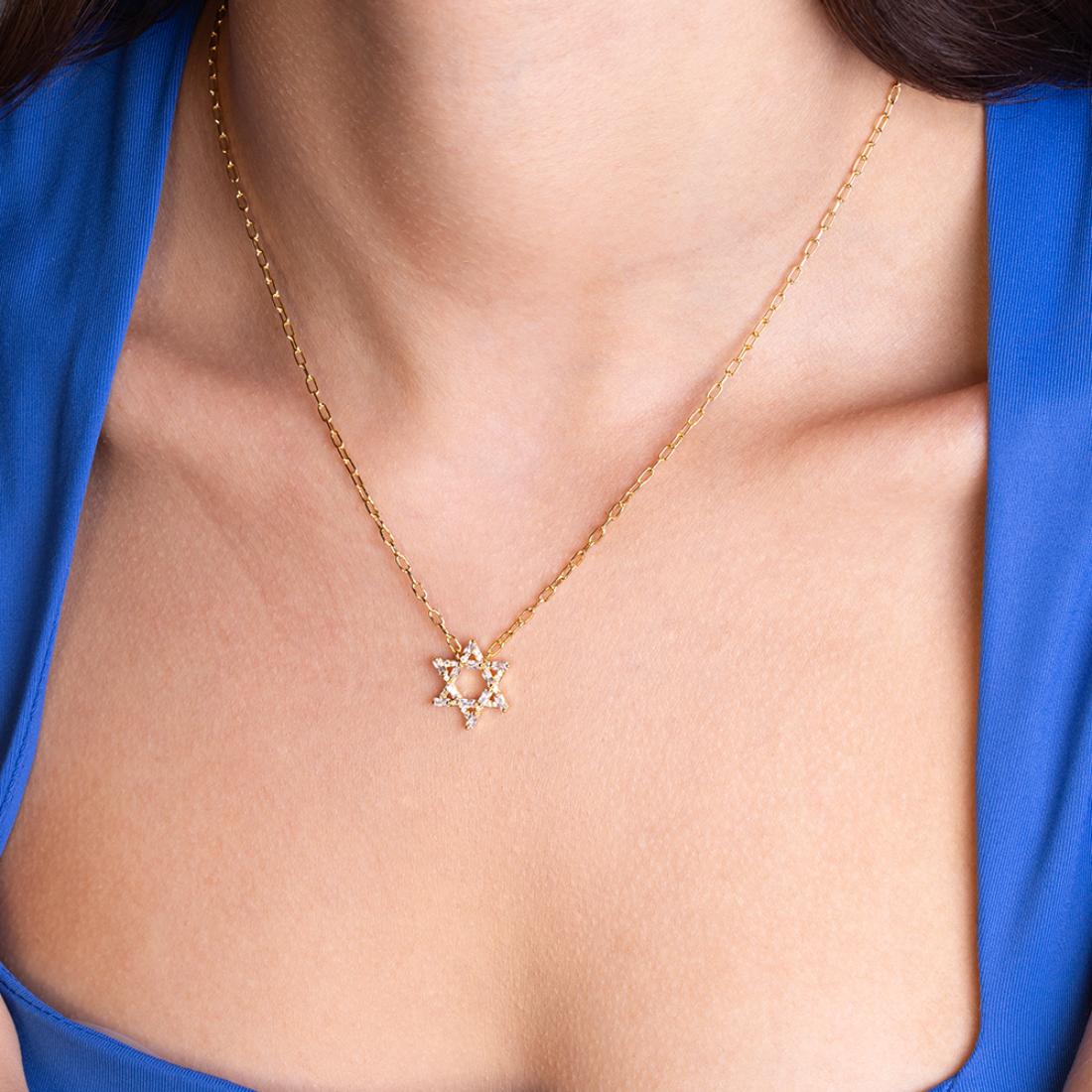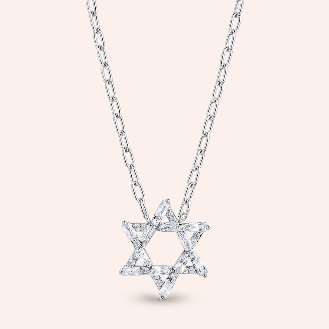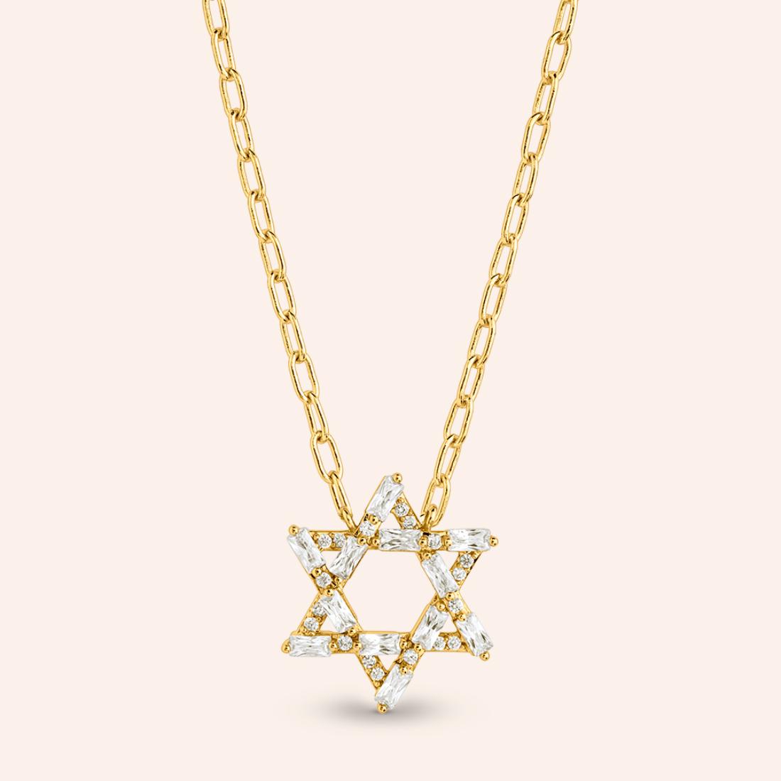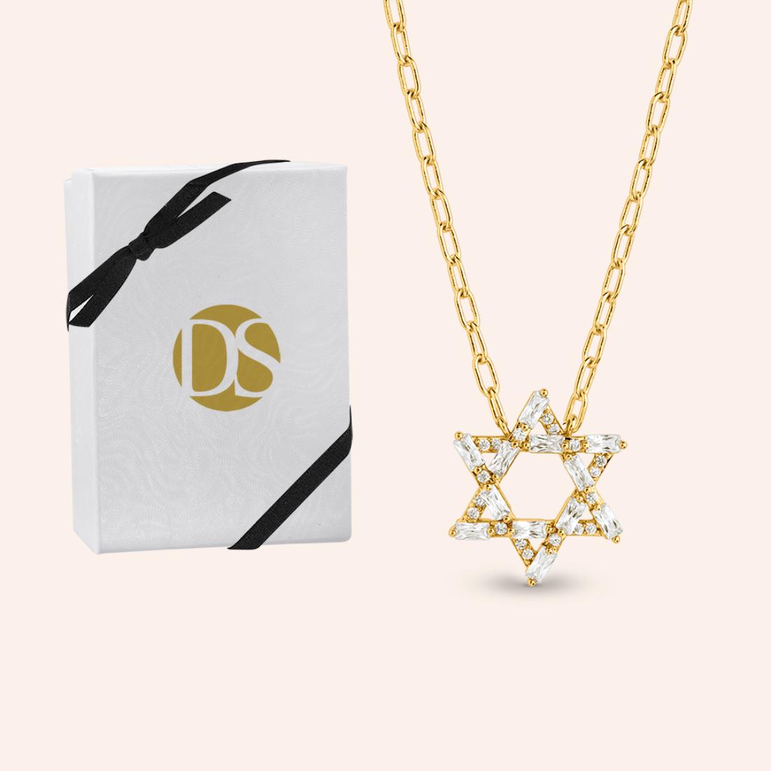This exquisite piece showcases the spiritual symbol in a modern and sophisticated design, adorned with shimmering baguette-cut stones that capture the light with every movement. As a symbol of faith and elegance combined, this necklace is a perfect addition to both your everyday ensemble and special occasions, making it a cherished piece in your jewelry collection.