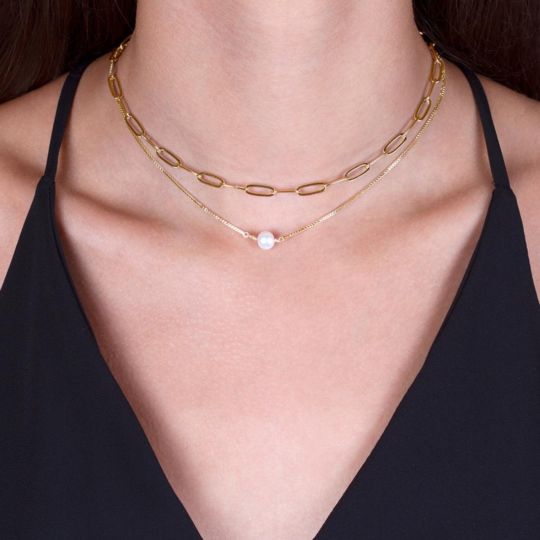 Meet your new fashion staple. A combination of a delicate snake chain and a Cultured Freshwater Pearl, this timeless Necklace is the perfect jewelry piece for a flattering, lightweight look.