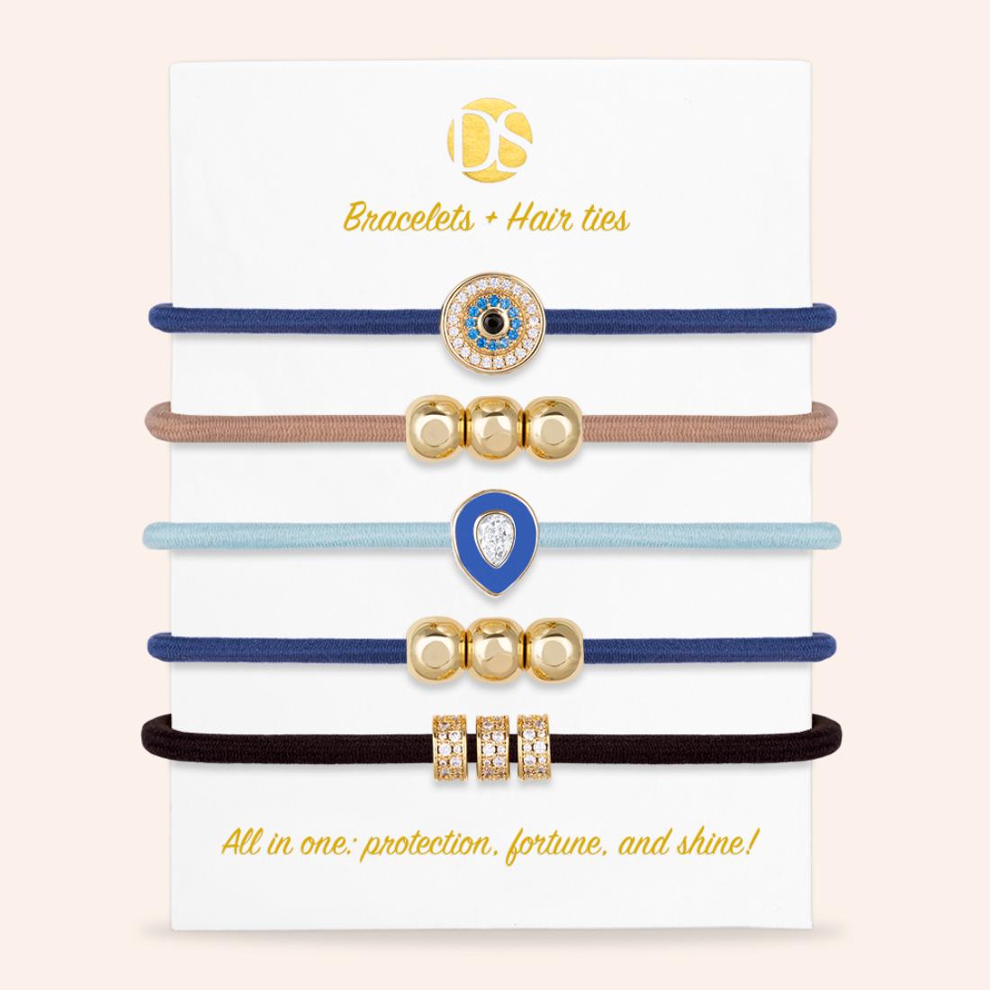 All in One Hair Ties & Bracelet Jewels - Set of 5