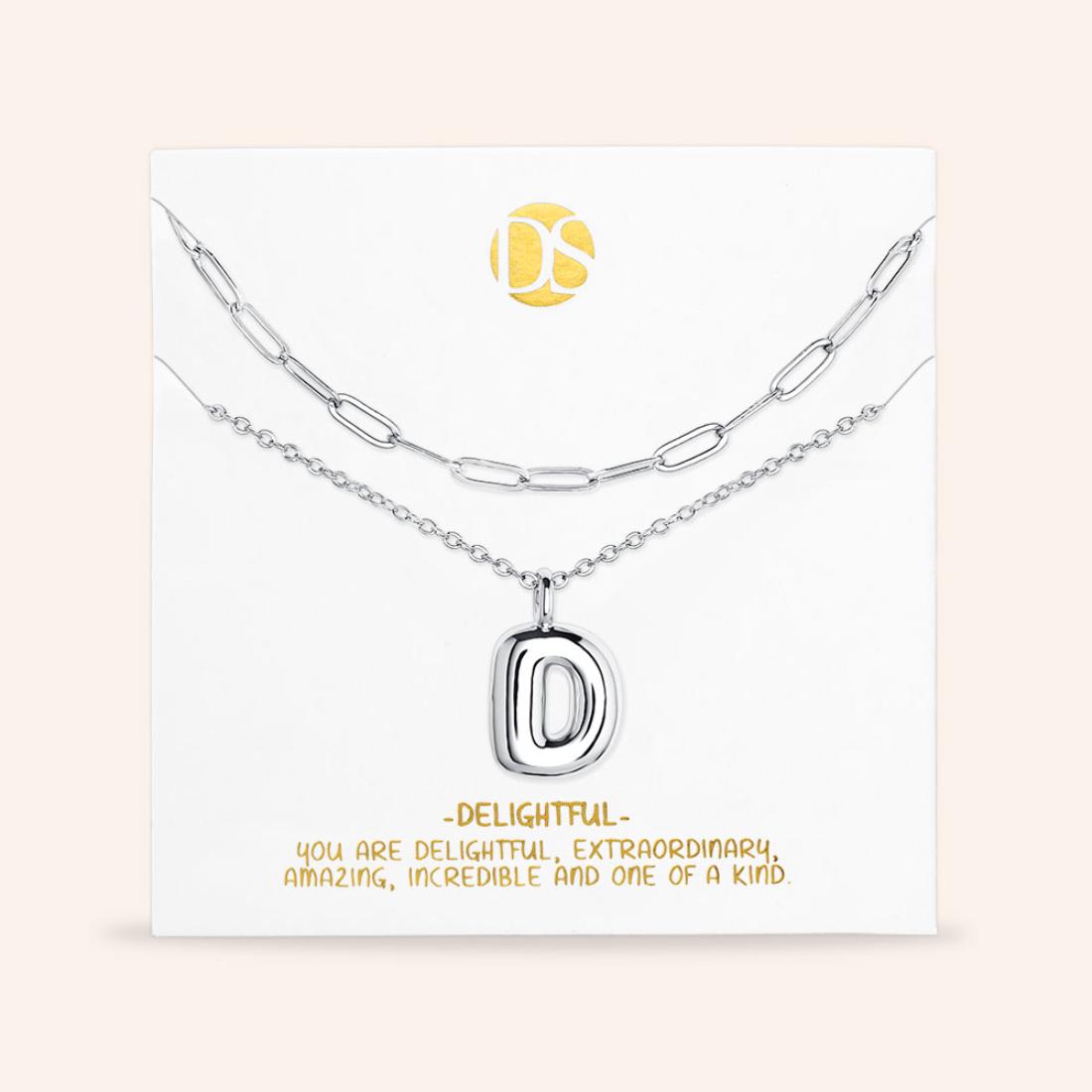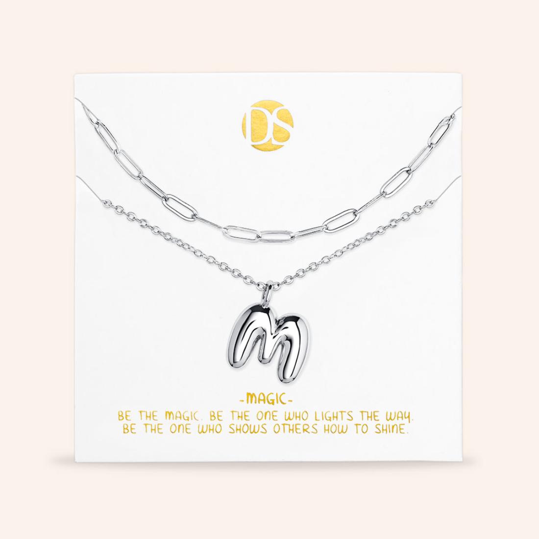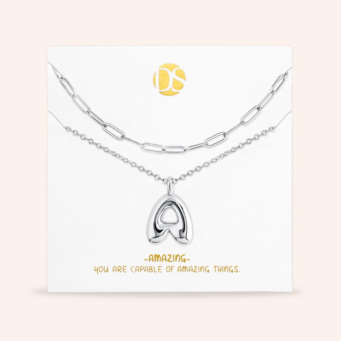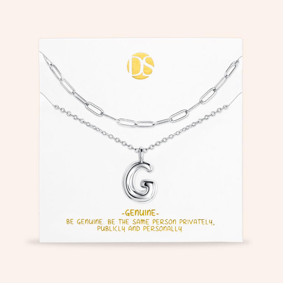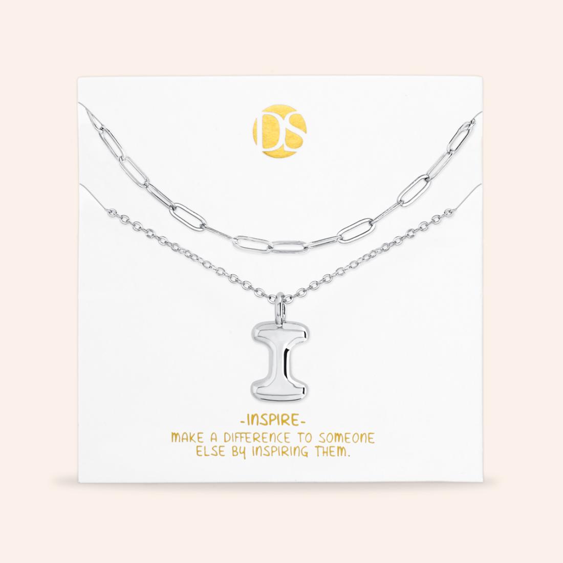 Bubbly Initial Set of Two Layering Necklaces – Silver