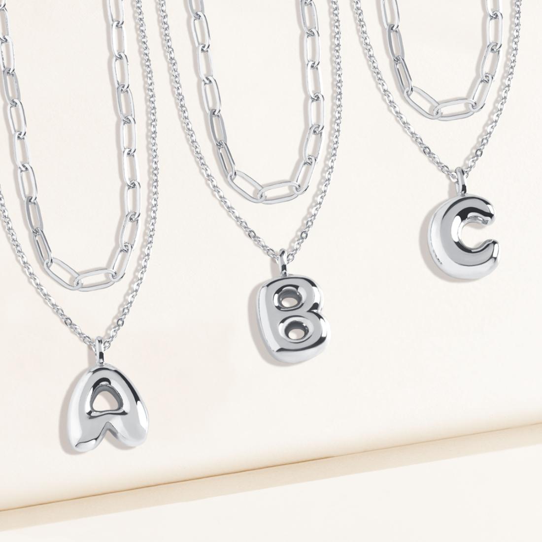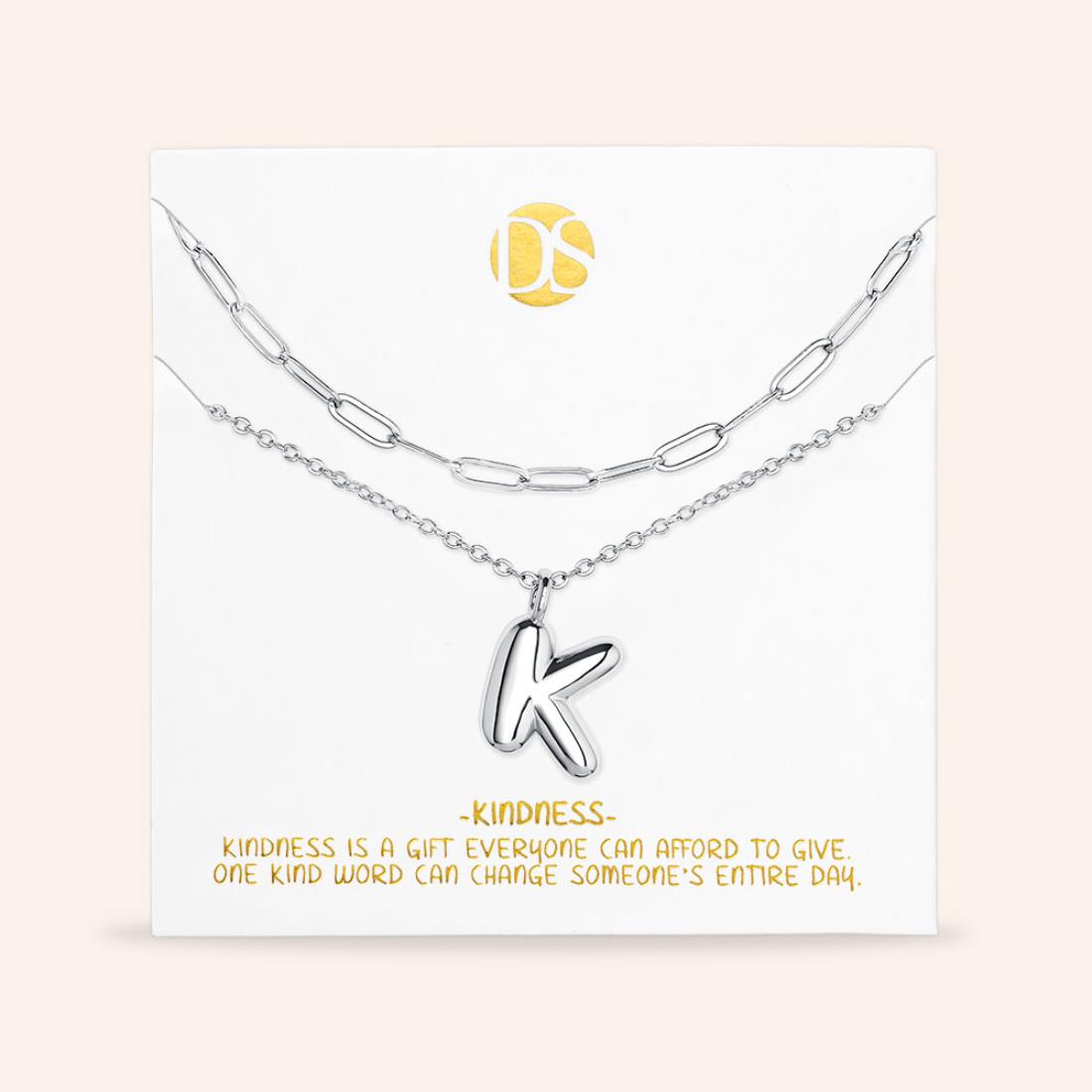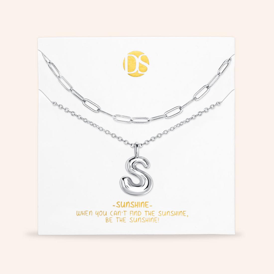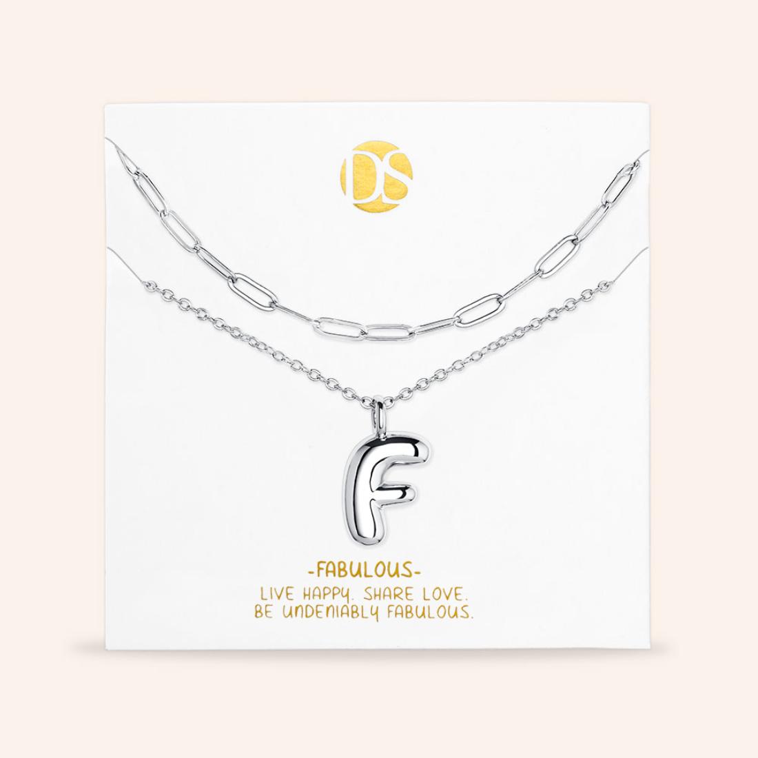 Bubbly Initial Set of Two Layering Necklaces – Silver