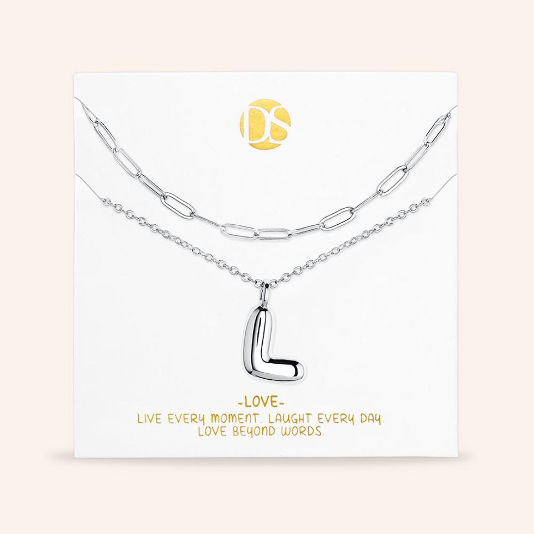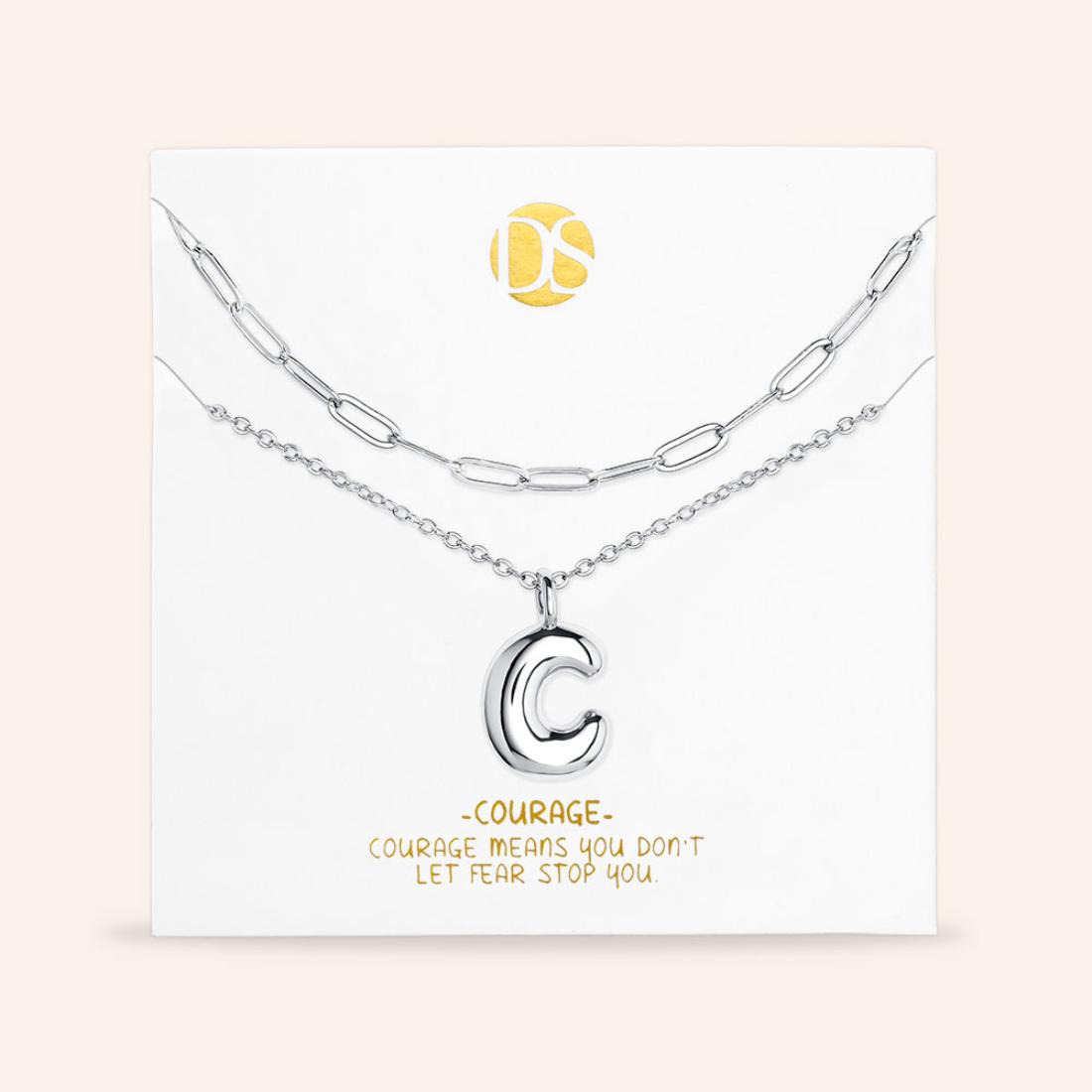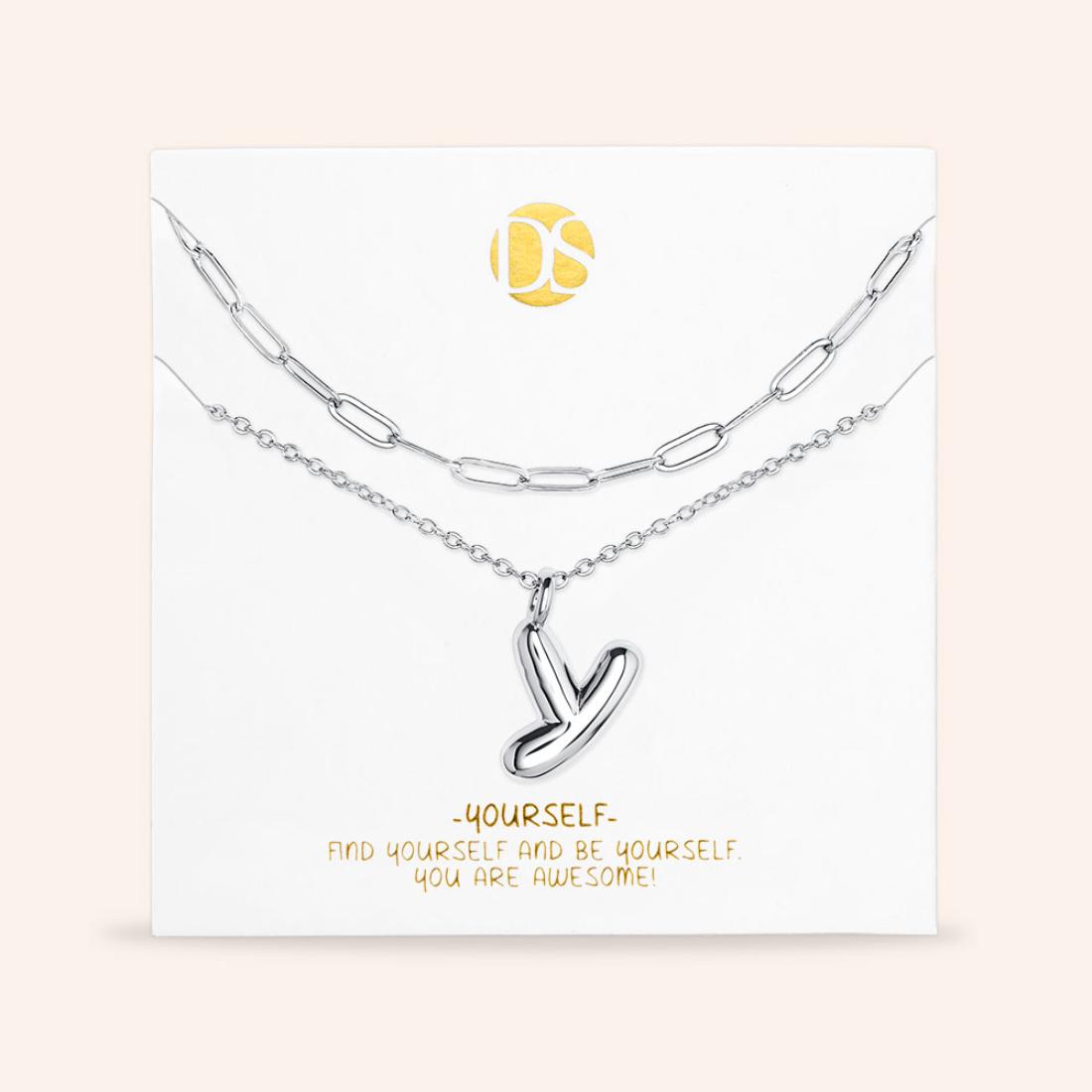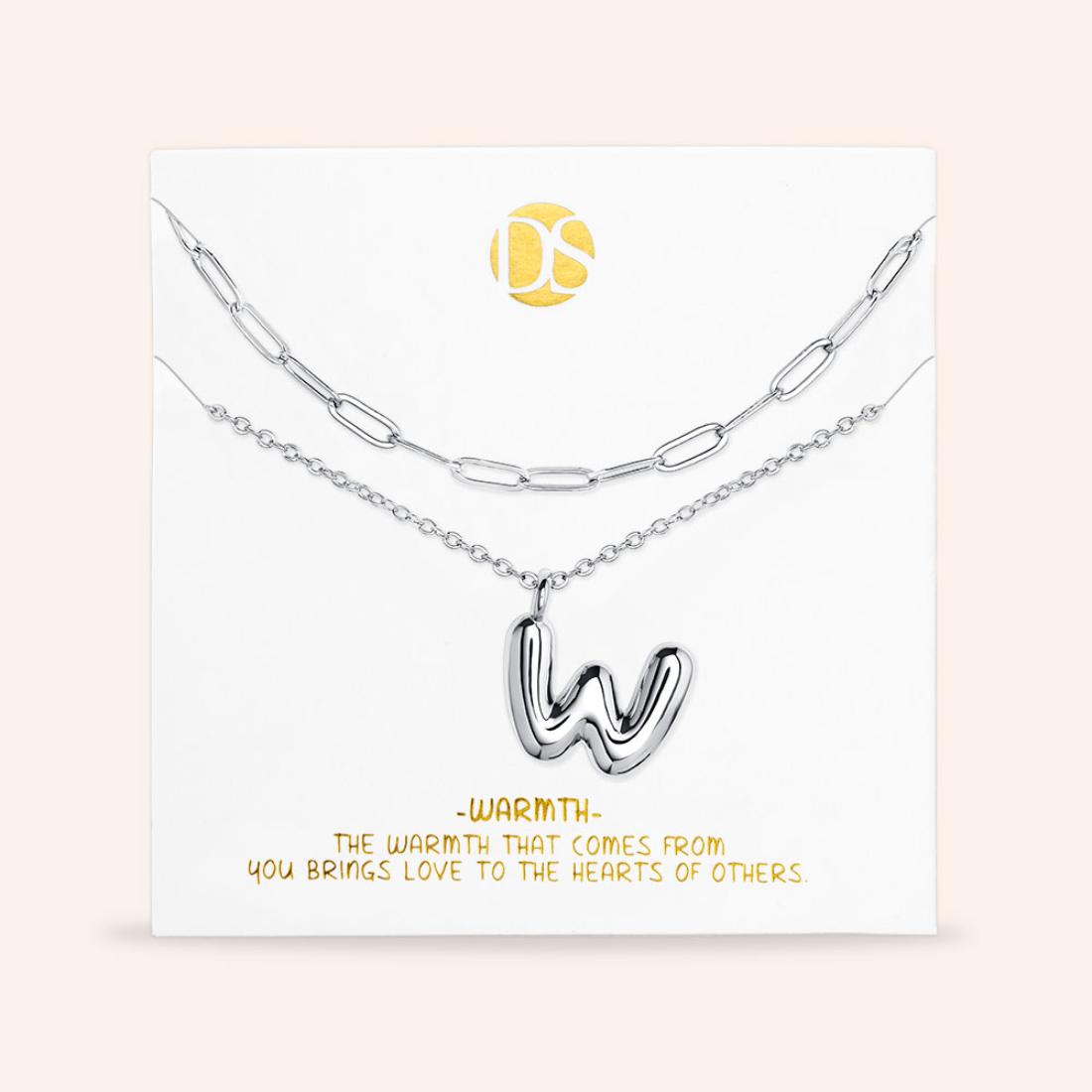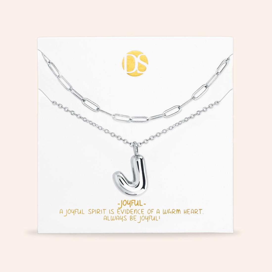 Bubbly Initial Set of Two Layering Necklaces – Silver