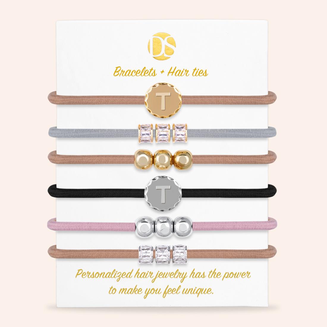 The Unique One Initial Hair Ties & Bracelet Jewels- Set of 6