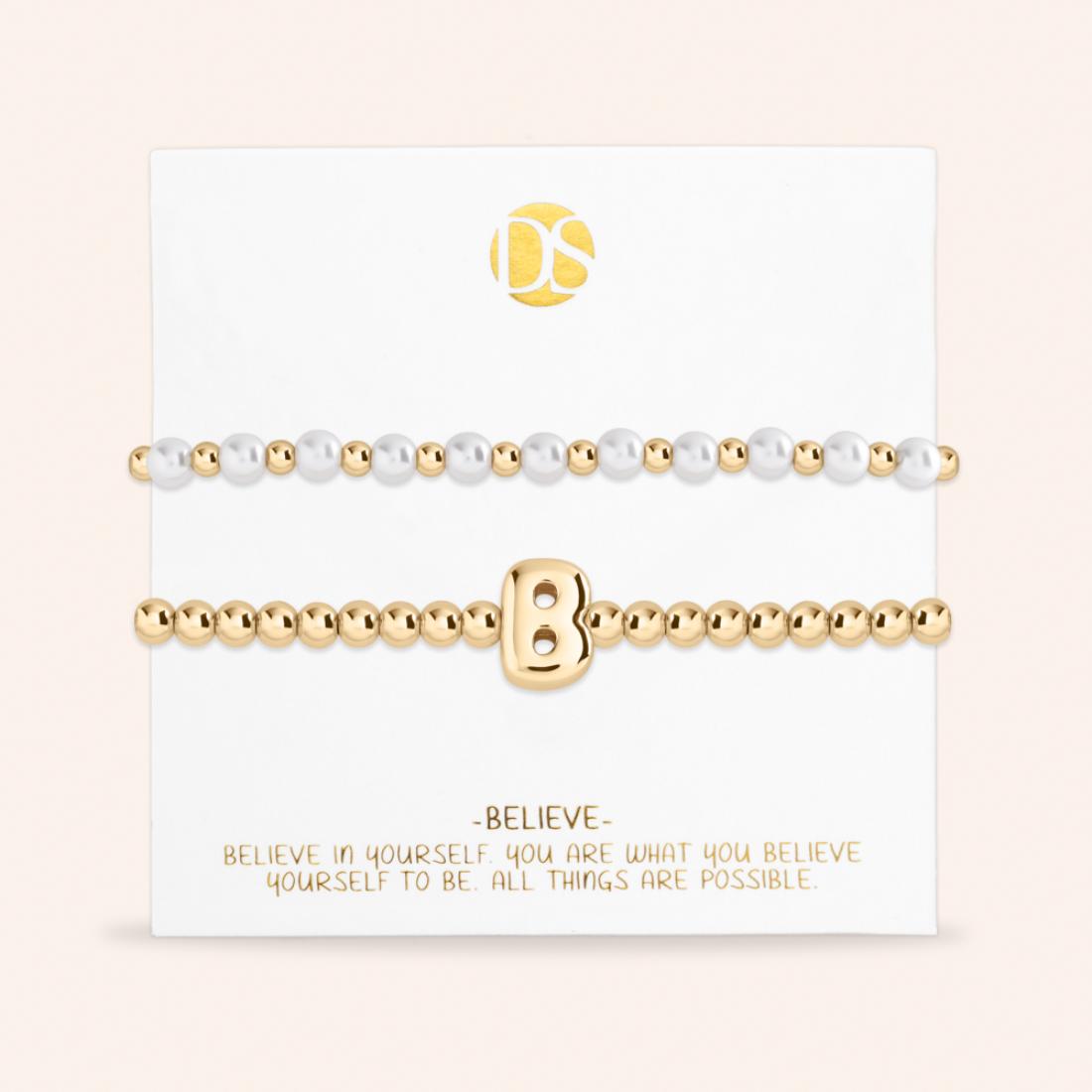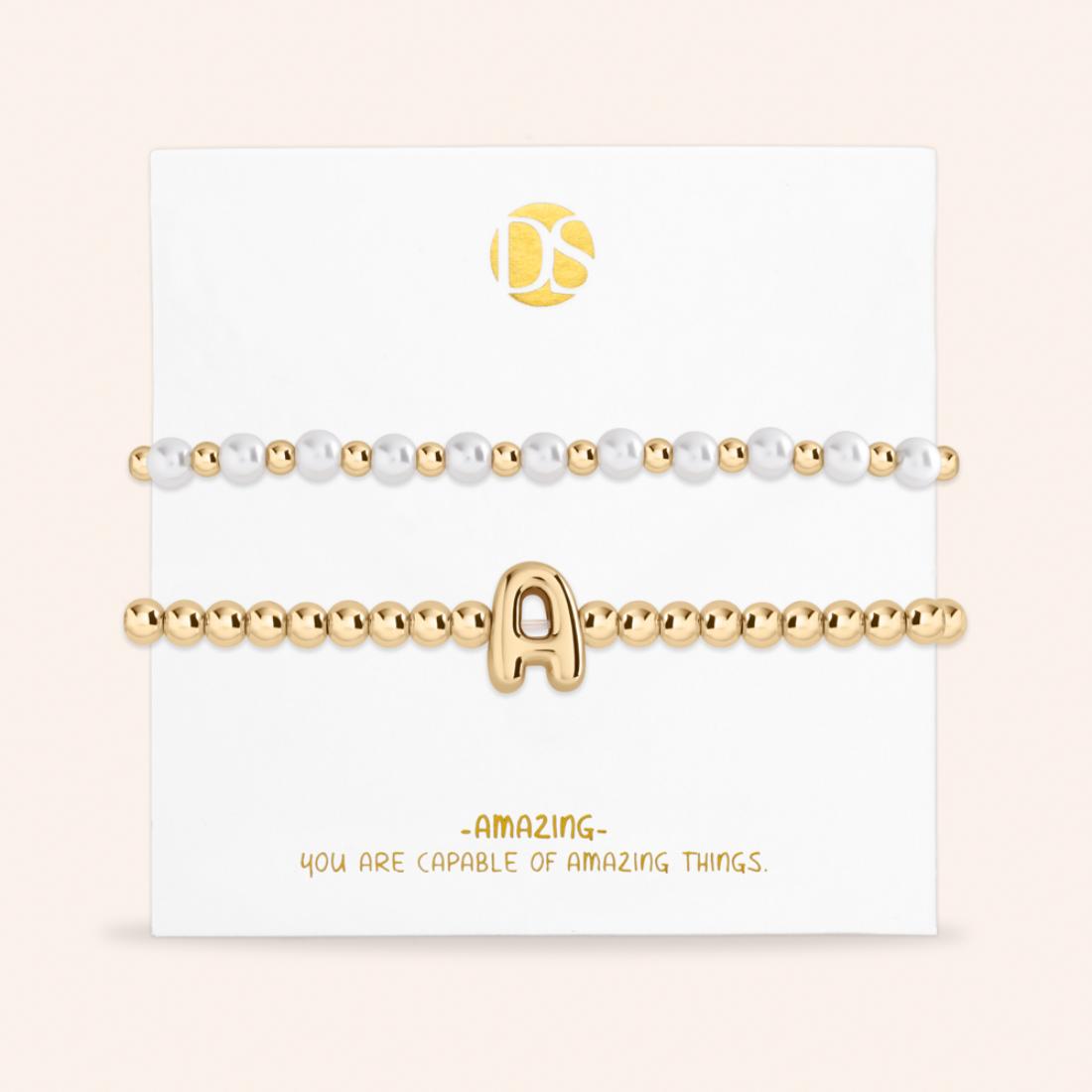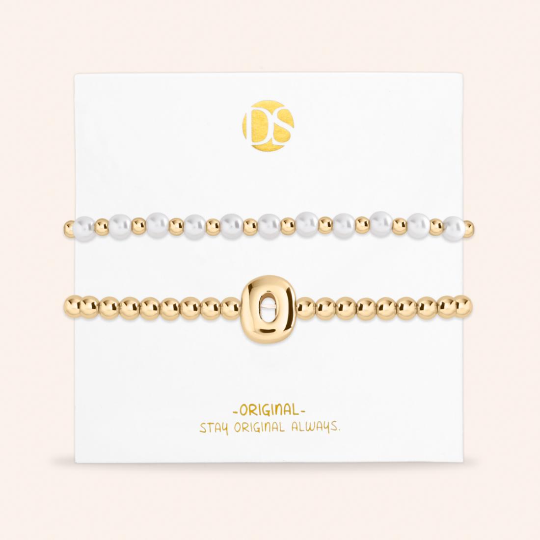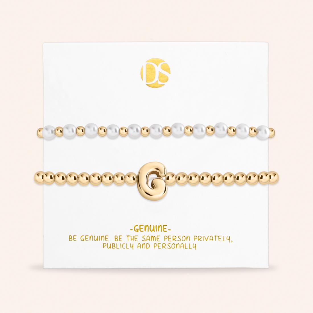 Yours to Keep Initial & Pearl Stretch Bracelets – Set of 2