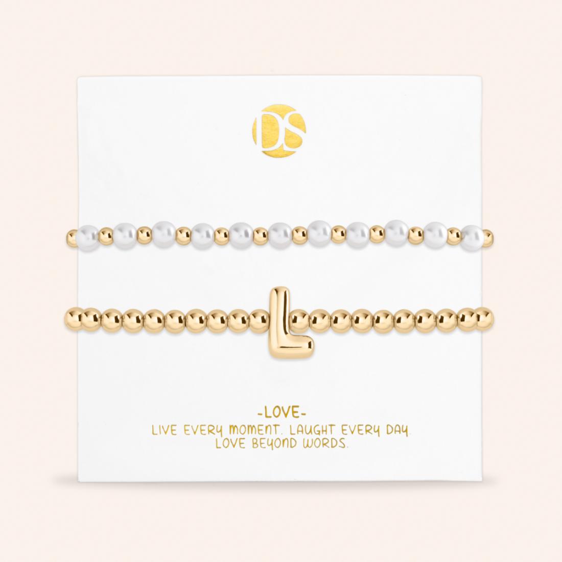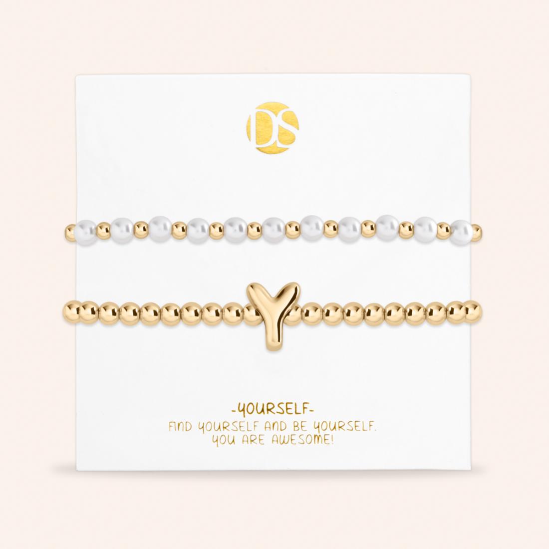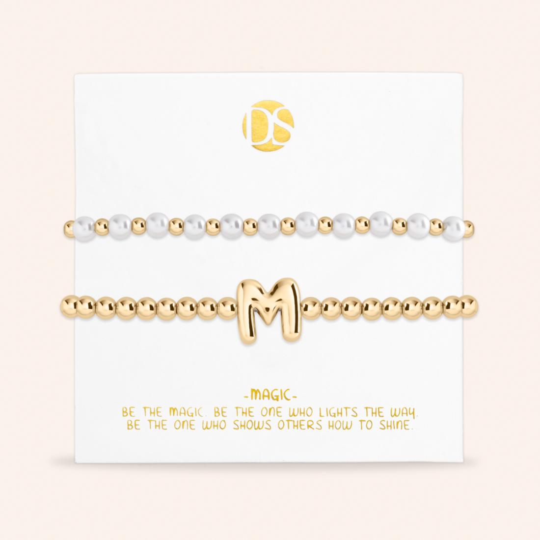 Yours to Keep Initial & Pearl Stretch Bracelets – Set of 2