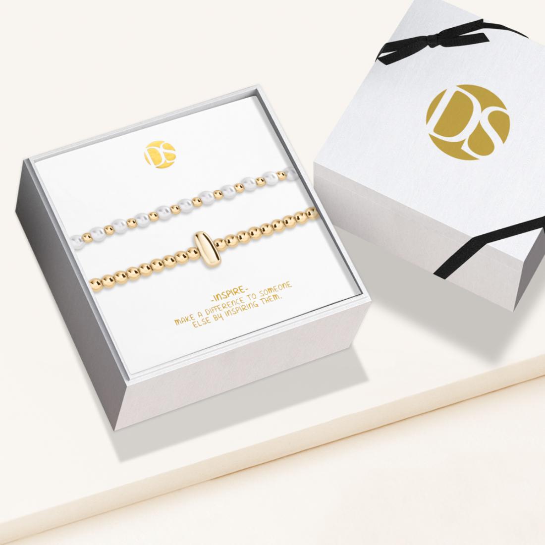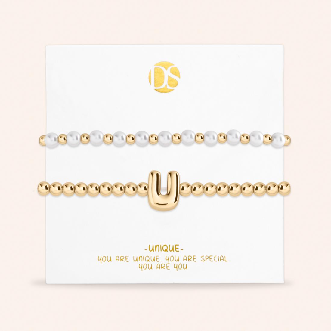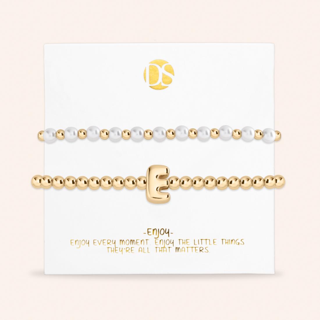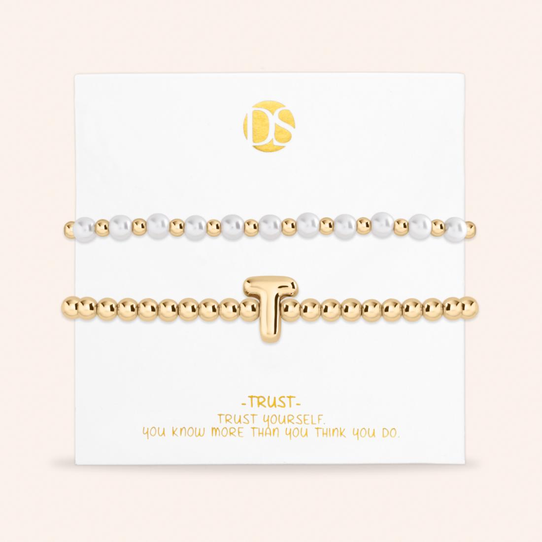 Yours to Keep Initial & Pearl Stretch Bracelets – Set of 2